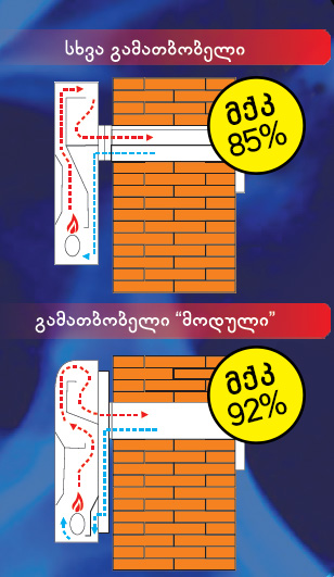 გამათბობლის რეალური ზომები: 72 х 60 х 22 სმ