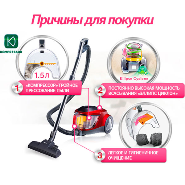 მტვერსასრუტები მტვერსასრუტი LG VC53202NHTRსიმძლავრე: 2000 W